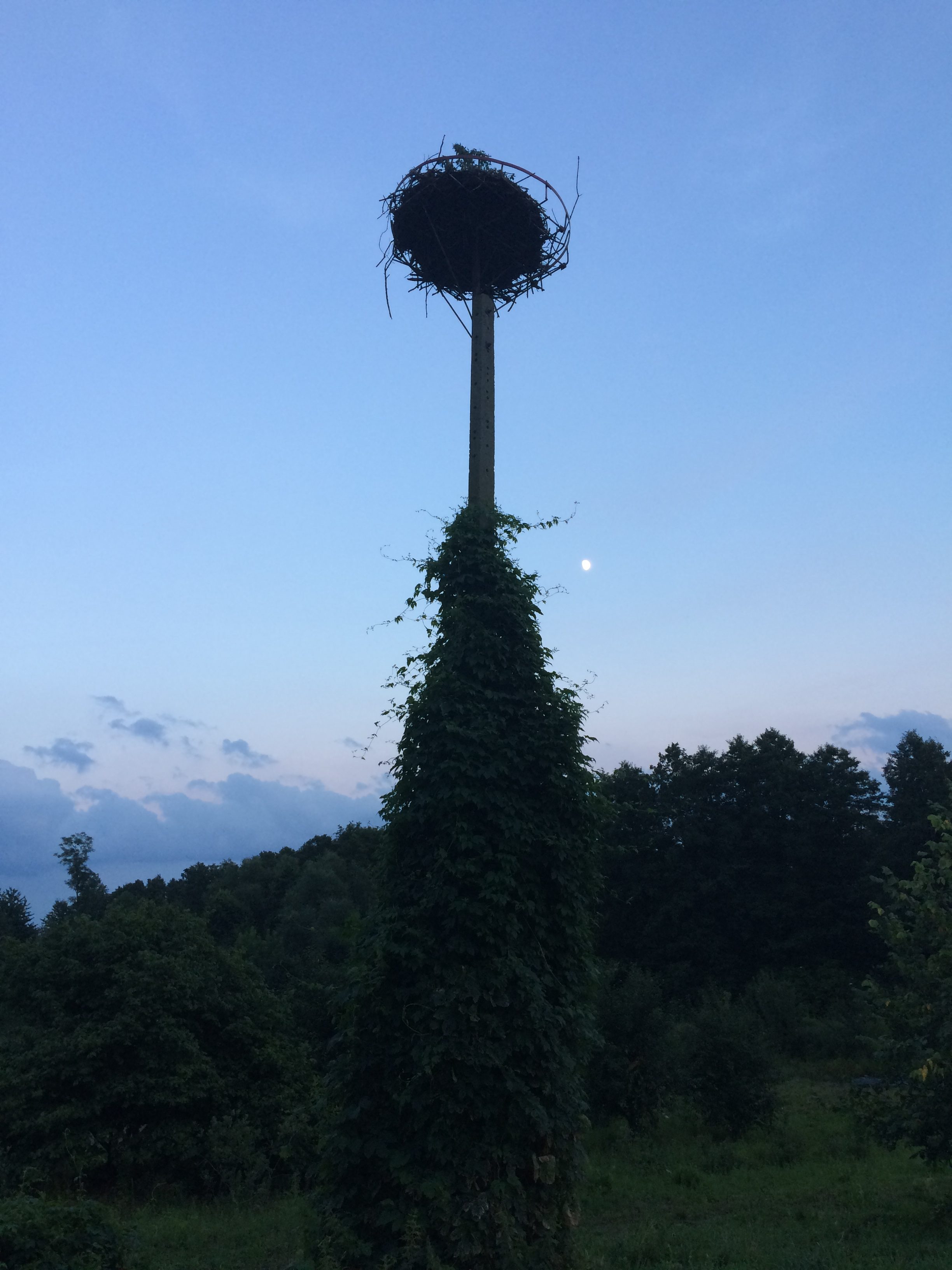 - W tamtych stronach jest pełno bocianów. To gniazdo uwiły sobie na słupie postawionym specjalnie dla nich obok kościoła w Drozdowie.